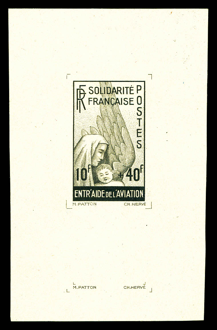 2686 ng imageFRANCE LIBRE PA N°1, Entraide de l'Aviation: Epreuve d'impression en noir. TB. R. Qualité: (*) (Image)