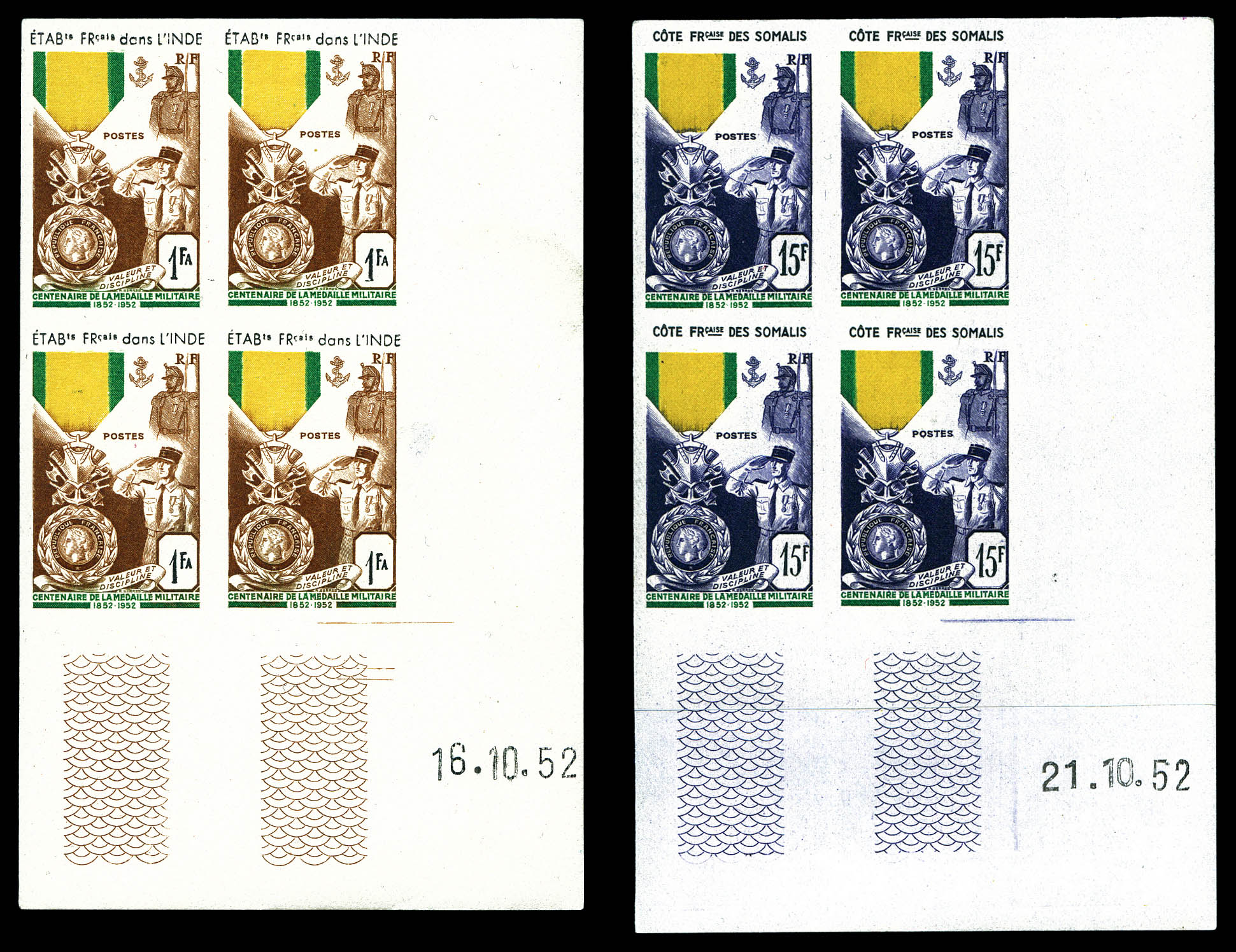 2692 nh imageMédaille militaire: La série complète non dentelée en blocs de quatre coins datés d'octobre 1952. TTB (certificat) Qualité: ** Cote: 2820 euros (Image)