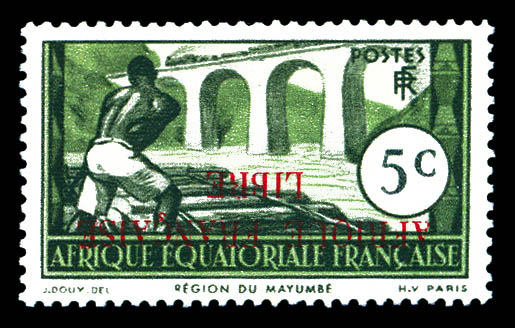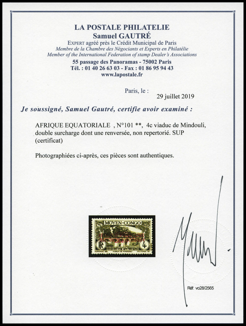 N°101a, 4c viaduc de Mindouli, double surcharge dont une renversée. SUP (certificat) Qualité: ** Cote: 950 euros (Image) (imagea)