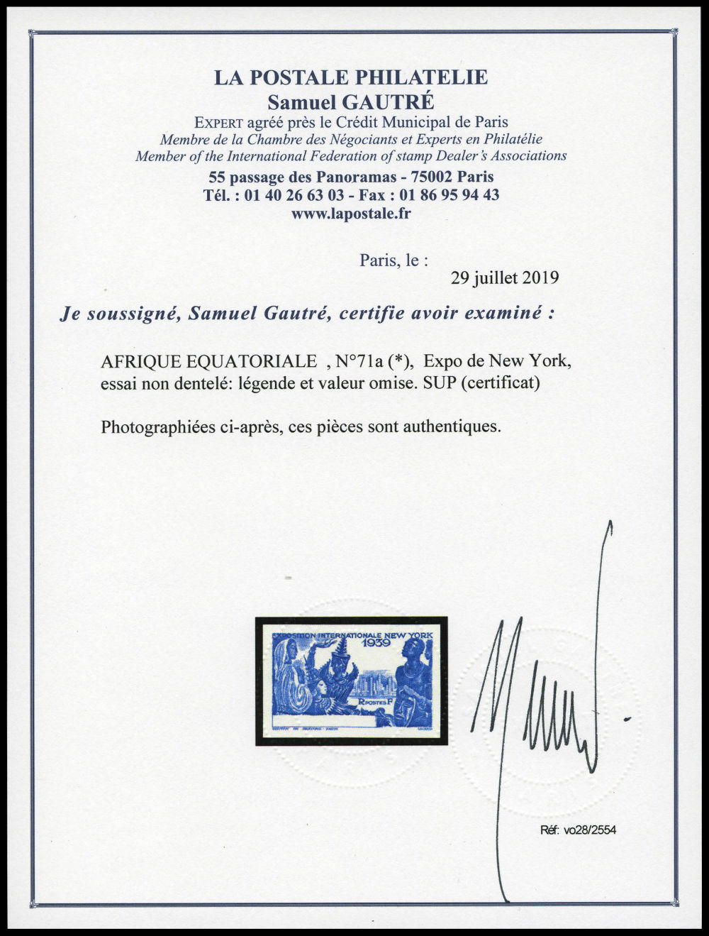 N°71b, Non dentelé sans légende ni valeur. SUP (certificat) Qualité: (*) Cote: 1250 euros (Image) (imagea)