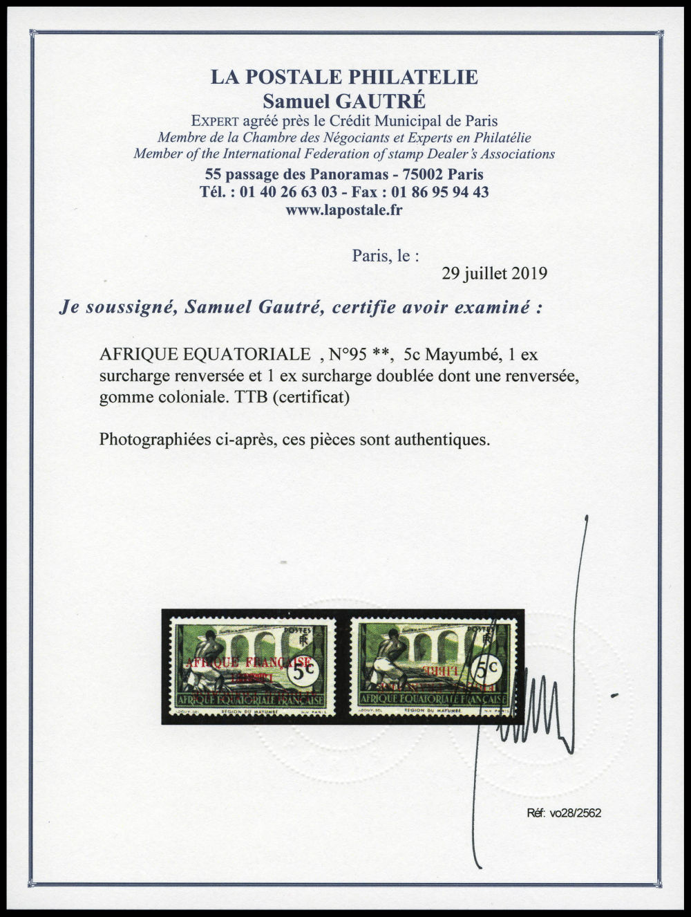 N°95d, 5c noir et vert, double surcharge dont une renversée, quasi**. TTB. R. (certificat) Qualité: * Cote: 420 euros (Image) (imagea)