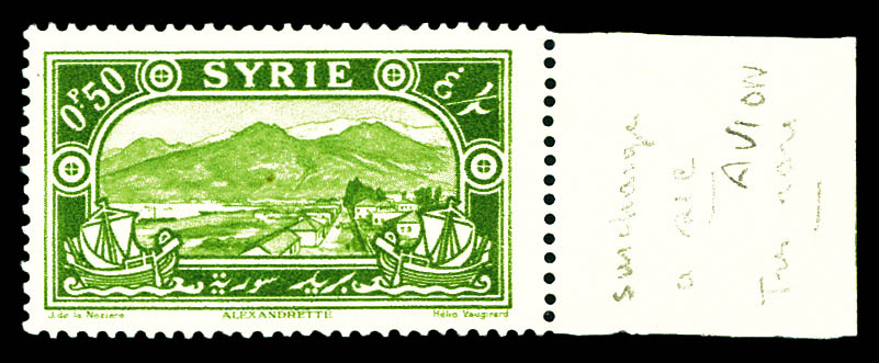 2832 nh imageN°14a, 'Sandjak d'Alexandrette' manquant. SUP (certificat) Qualité: ** Cote: 440 euros (Image)
