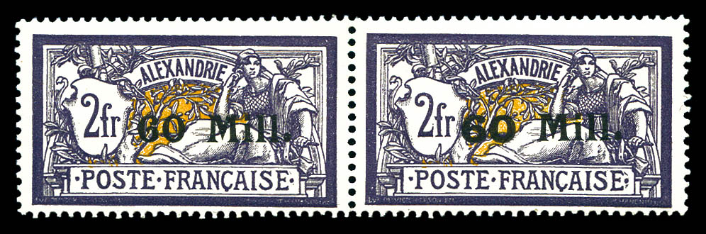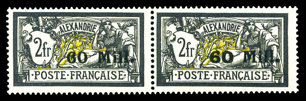 2838 og imageN°48Aaa, 60 m sur 2f violet-noir, tirage du roi Fouad: type II tenant à normal (type I) en paire, fraîcheur postale. SUPERBE. R.R. (certificat) Qualité: * Cote: 4200 euros (Image)