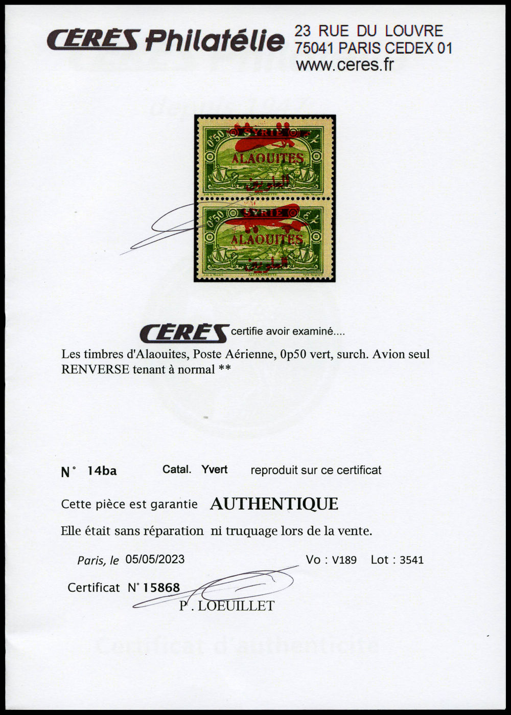 2824 nh imageN°14ba, Avion seul renversé tenant à normal en paire. SUP (certificat) Qualité: ** Cote: 460 euros (Image) (imagea) (All Images)