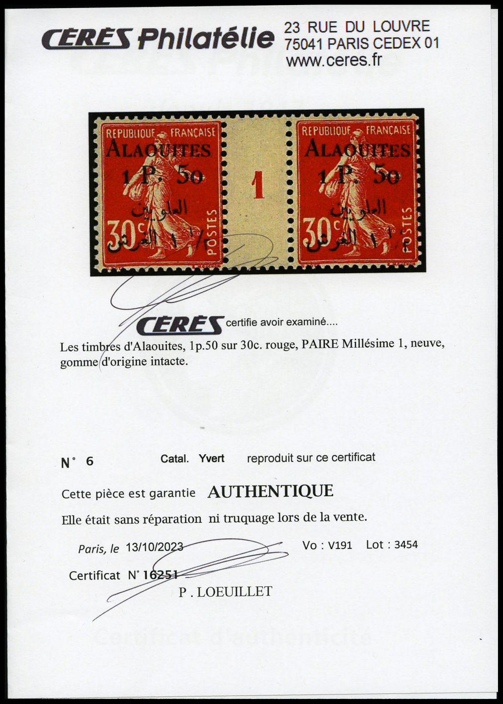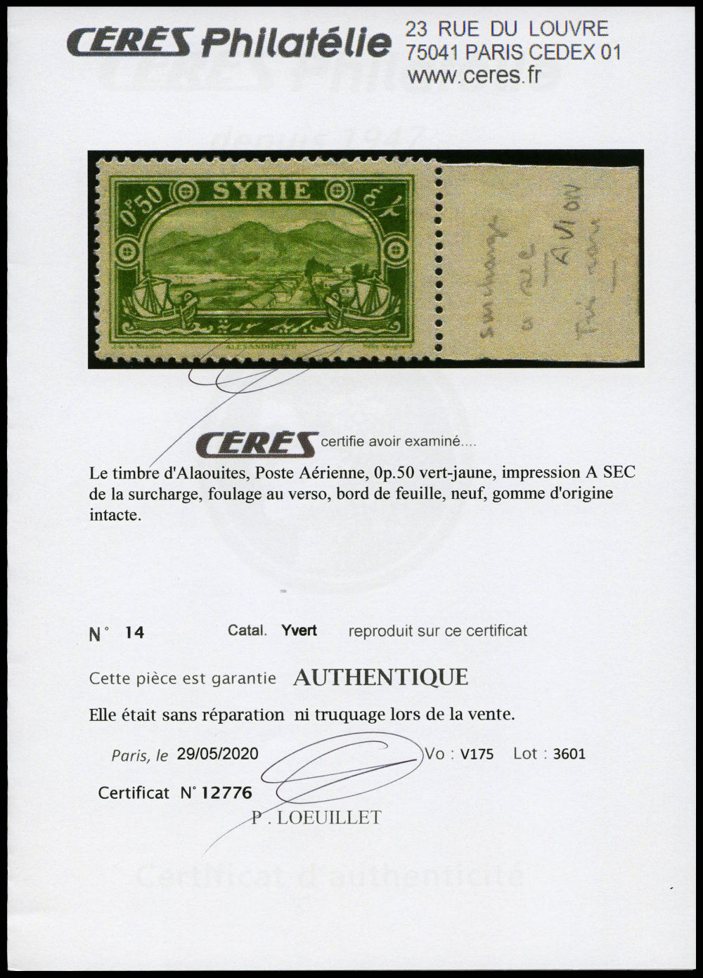 2825 nh imageN°14, 0 pi 50 vert-jaune: surcharge ALAOUITES en noir (non repertorié). TTB (certificat) Qualité: ** (Image)