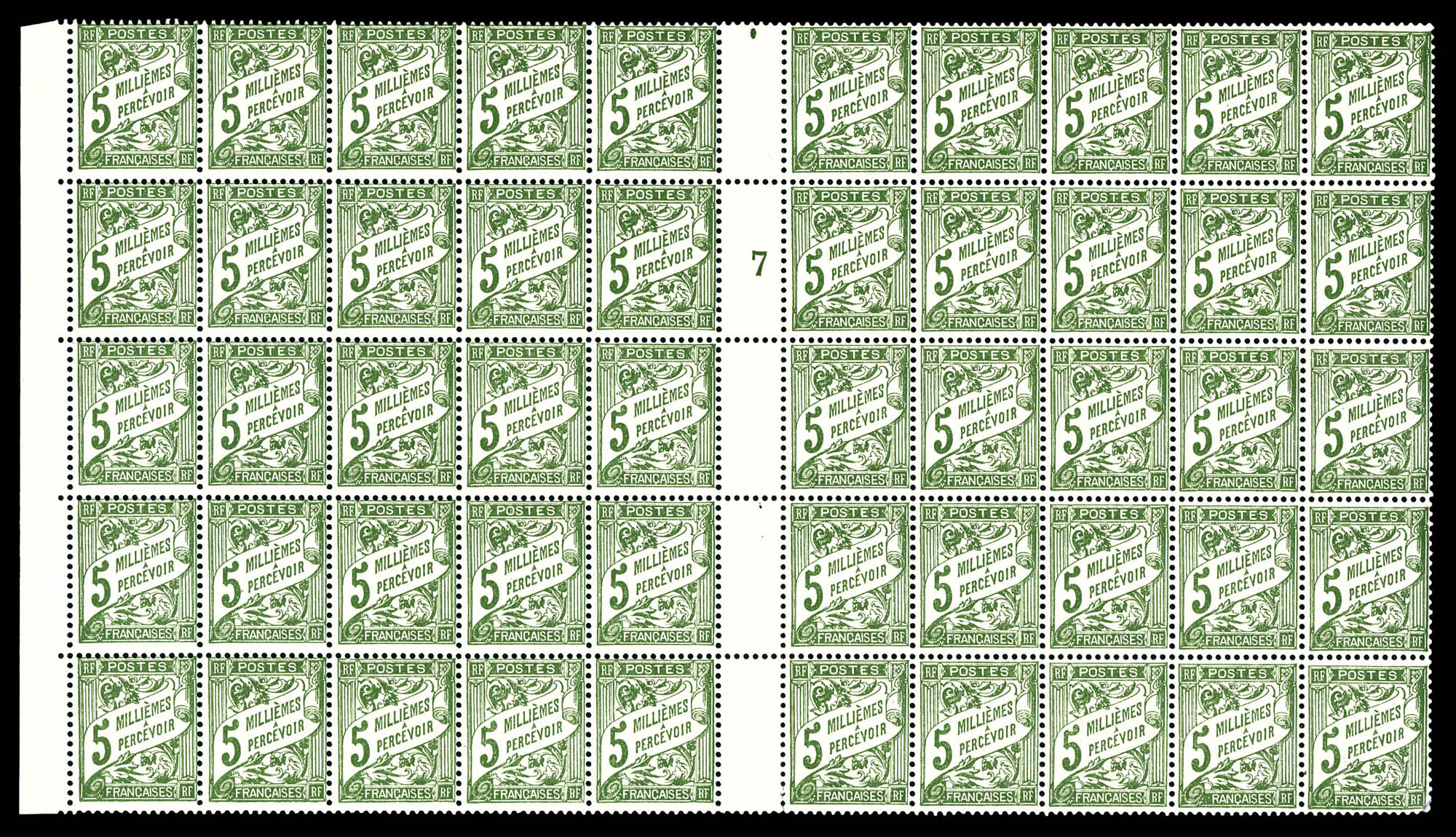 2847 nh imageN°9b, 5m olive: sans 'F' à Francaise tenant à normaux en panneau de 50 exemplaires. SUP Qualité: ** Cote: 372 euros (Image)