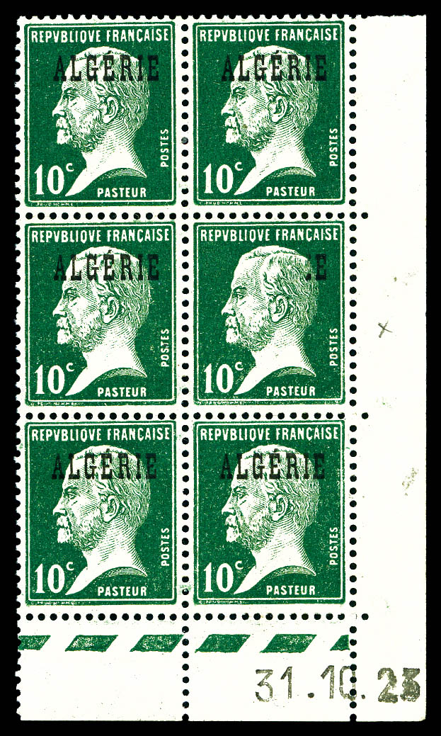 2851 nh imageN°9c, 10c Pasteur: Sans surcharge tenant à normaux au centre d'un bloc de 6 coin de feuille daté. SUPERBE. R. (signé Brun/certificat) Qualité: ** Cote: 2990 euros (Image) (imagea) (imageb) (All Images)