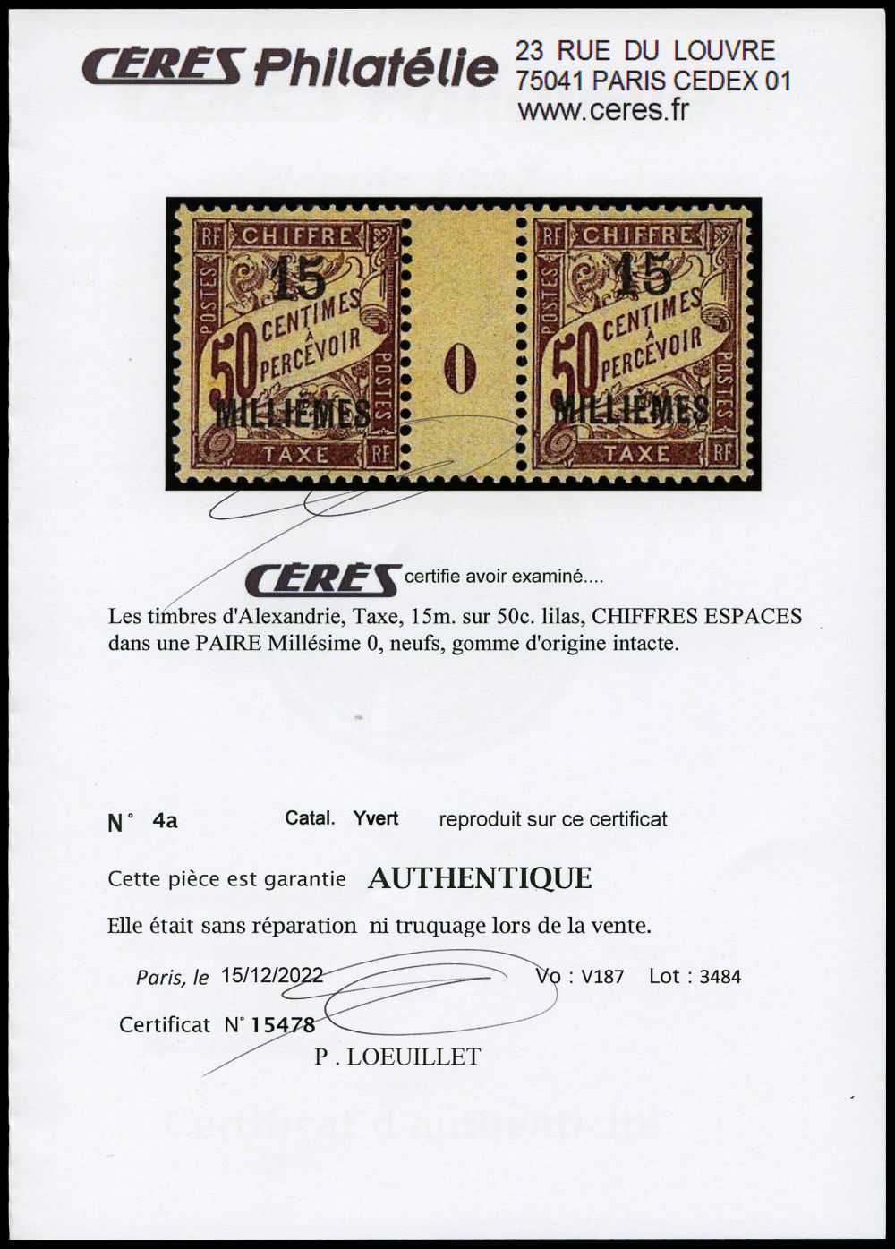 2849 nh imageN°4a, Taxe: Chiffres espacés en paire millésime '0'. SUP. R. (certificat) Qualité: ** Cote: 1800 euros (Image) (imagea) (All Images)