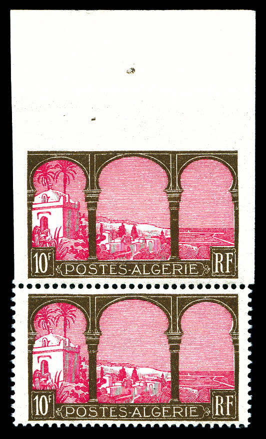 N°84aa, 10f brun et rosé: Non dentelé tenant à normal. SUP. R.R.R. (signé Calves/certificat) Qualité: ** Cote: 11800 euros (Image)