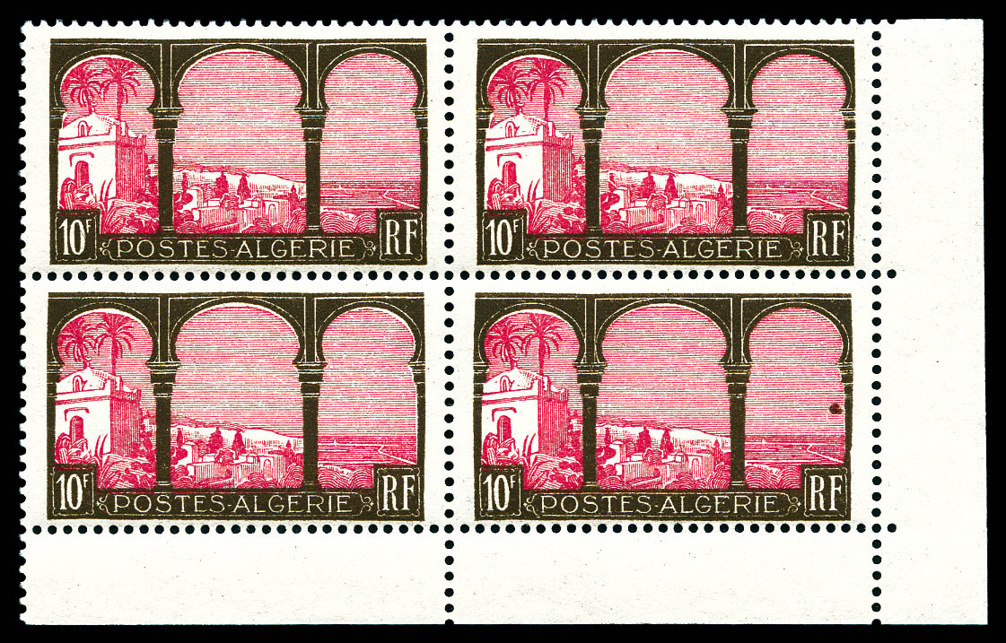 N°84b, 10f brun et rosé: Cinquième arbre tenant à normaux en bloc de quatre. SUP. R. (certificat) Qualité: ** Cote: 1794 euros (Image)
