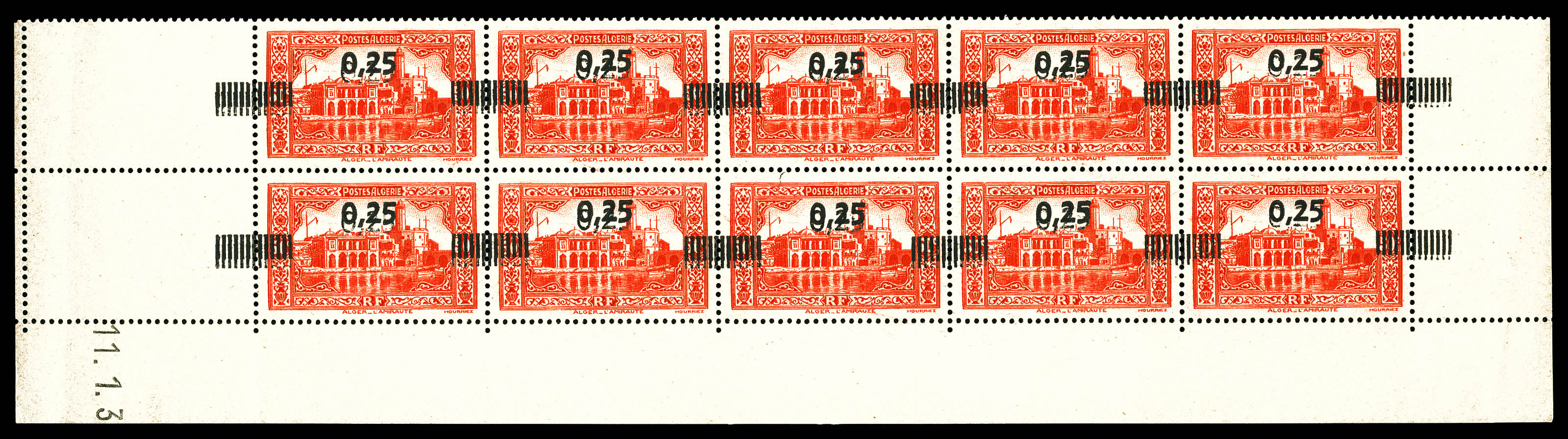 N°148a, 25c sur 50c rouge: double surcharge sur bloc de 10 exemplaires bas de feuille daté. SUP (certificat) Qualité: ** Cote: 1750