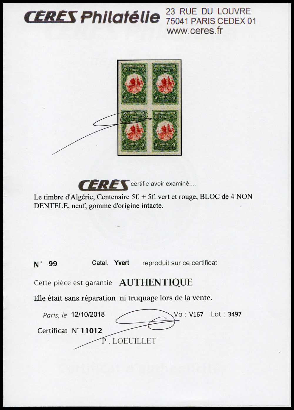 N°87/99, Série Centenaire de l'Algérie. TTB Qualité: * Cote: 200 euros (Image)