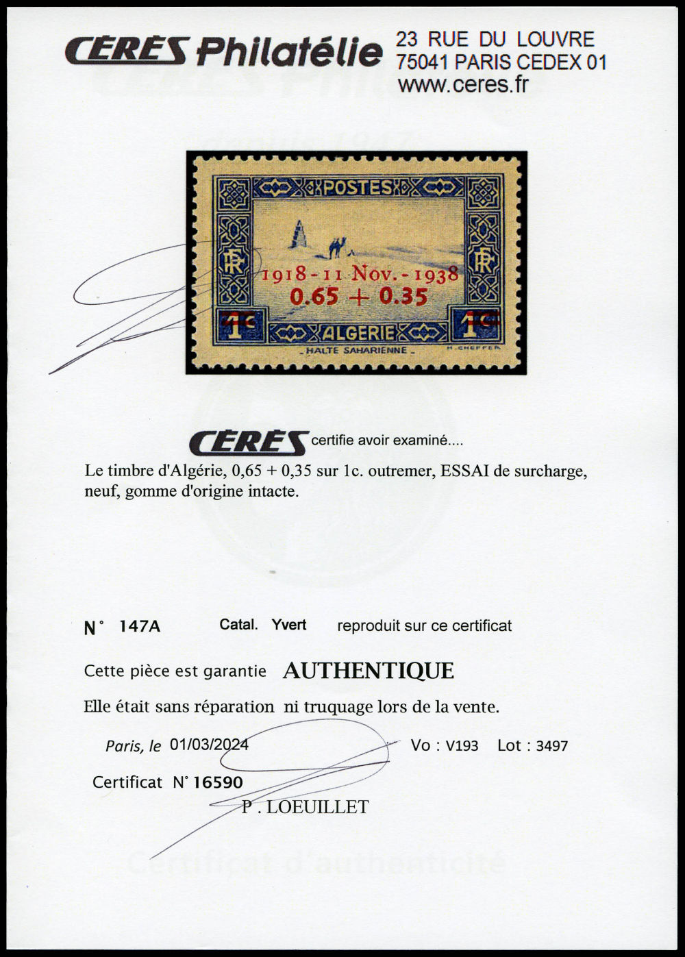 N°147A, Essai en bleu sur n°101 avec 2 barres fines. SUP (signé Brun/certificat) Qualité: ** Cote: 690 euros (Image) (imagea)
