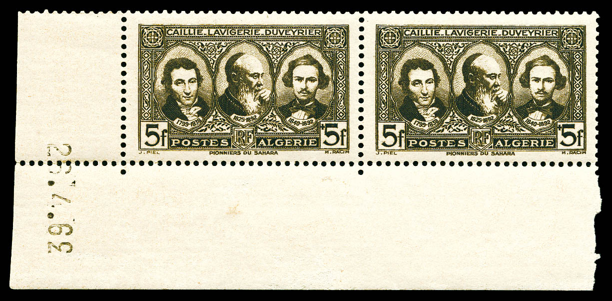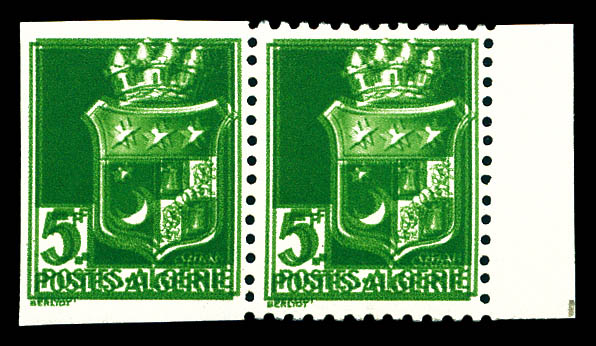 N°183, 5f vert-jaune: Double impression non dentelé tenant à dentelé en paire bdf (non catalogué). SUP Qualité: ** (Image)