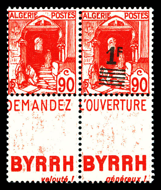 N°158, 1F sur 90c rouge type II: exemplaire avec surcharge très deplacée tenant à exemplaire non surchargé avec bandes pub. SUP. R.
