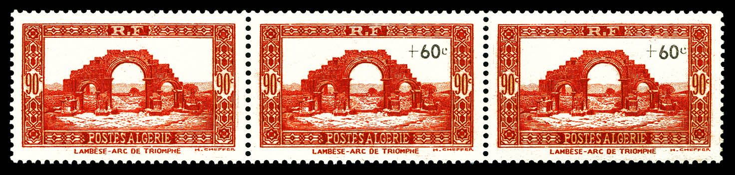 N°167b, +60c sur 90c rouge: non surchargé tenant à 2 normaux en bande de 3. SUP (certificat) Qualité: ** Cote: 1850 euros (Image) (imagea)