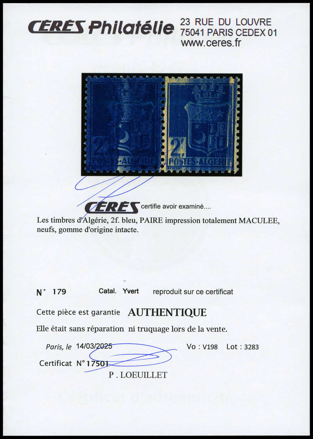 N°179, 2f bleu: impression maculée sur paire. TTB Qualité: ** (Image) (imagea)