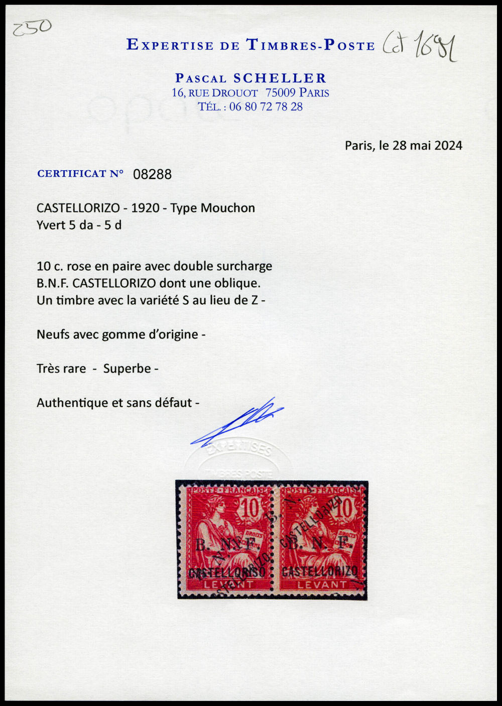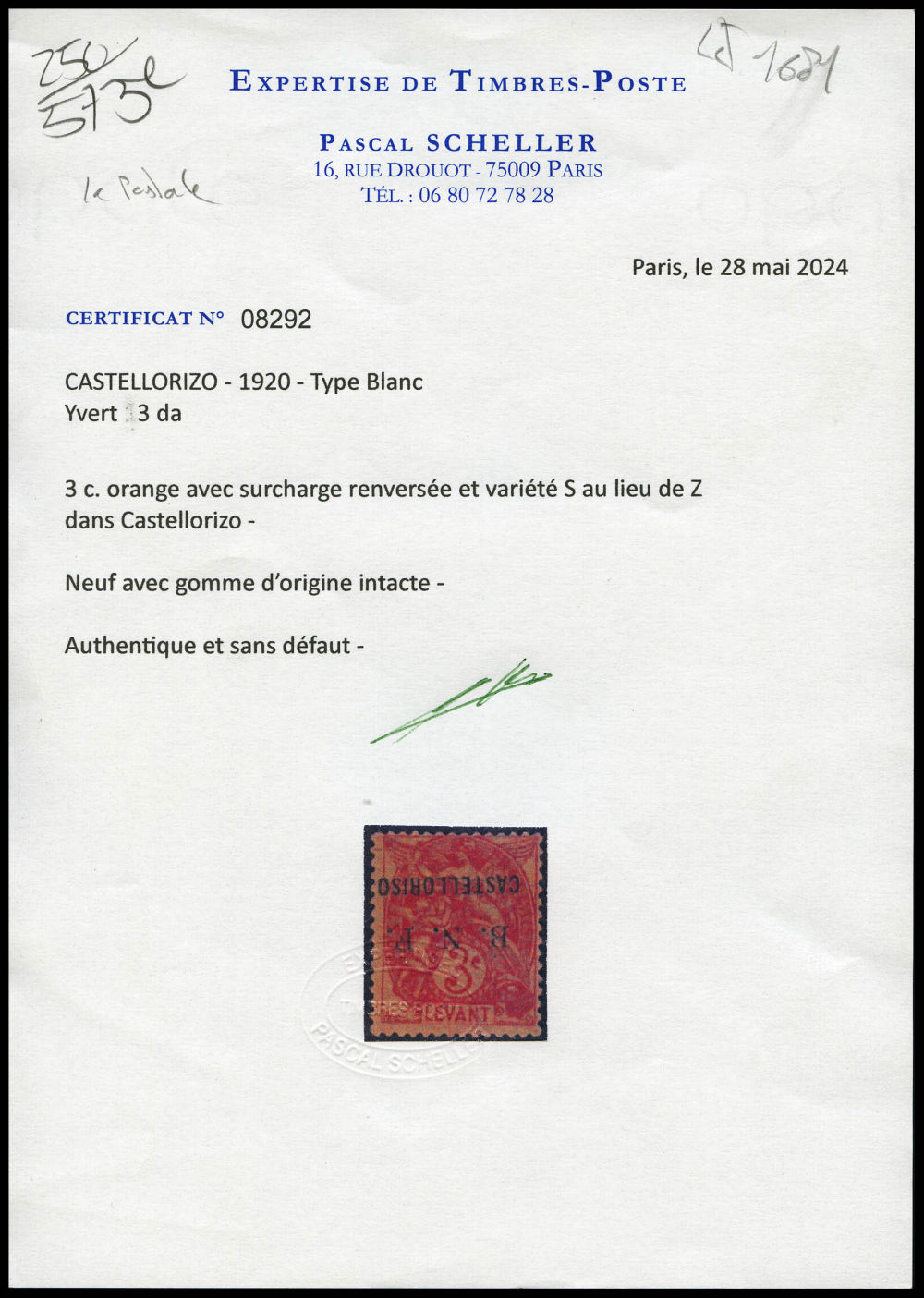 N°12a, 'CASTELLORISO' ('S' au lieu de 'Z'), très frais et bien centré. SUP (signé Brun/certificat) Qualité: * Cote: 850 euros (Image)