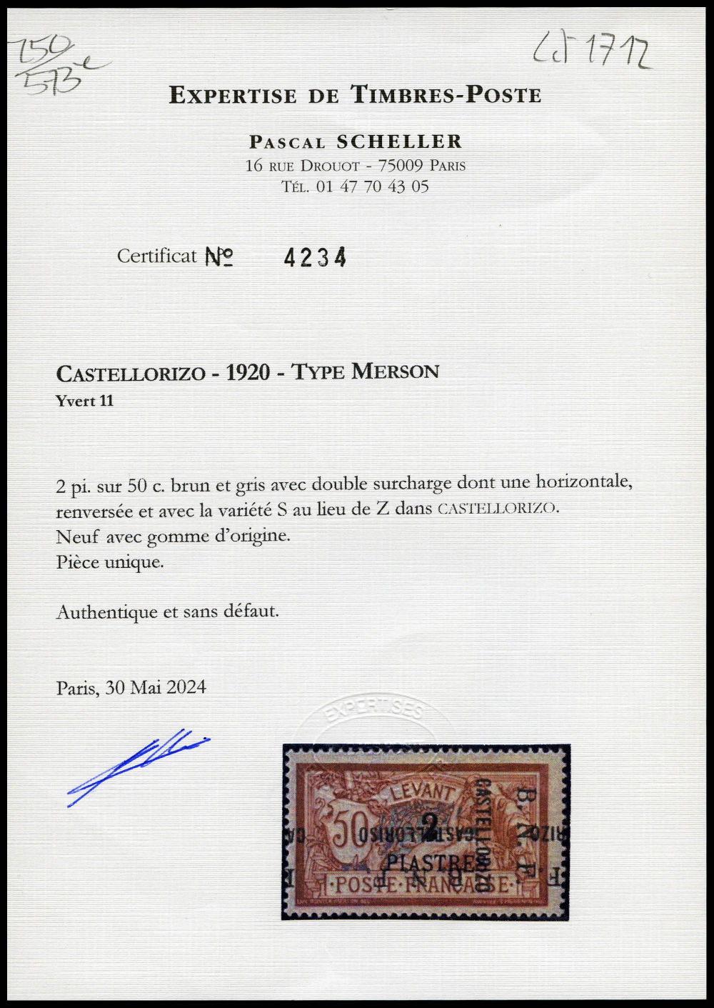N°11a, 'CASTELLORISO' ('S' au lieu de 'Z'), très frais. SUP (signé Brun/certificat) Qualité: * Cote: 790 euros (Image)