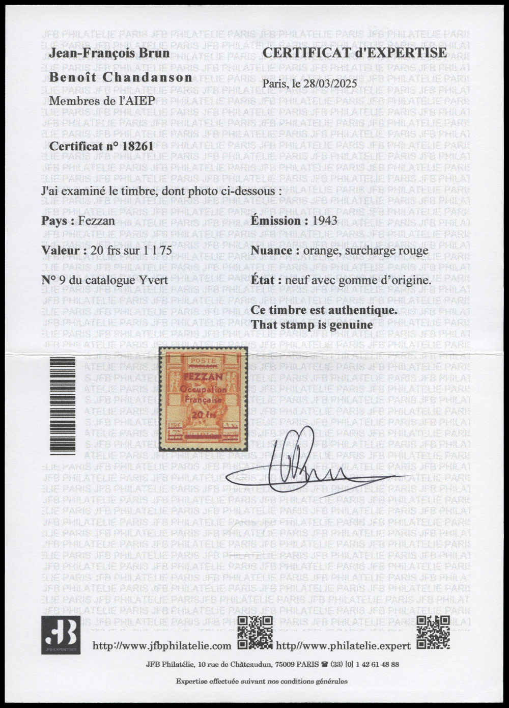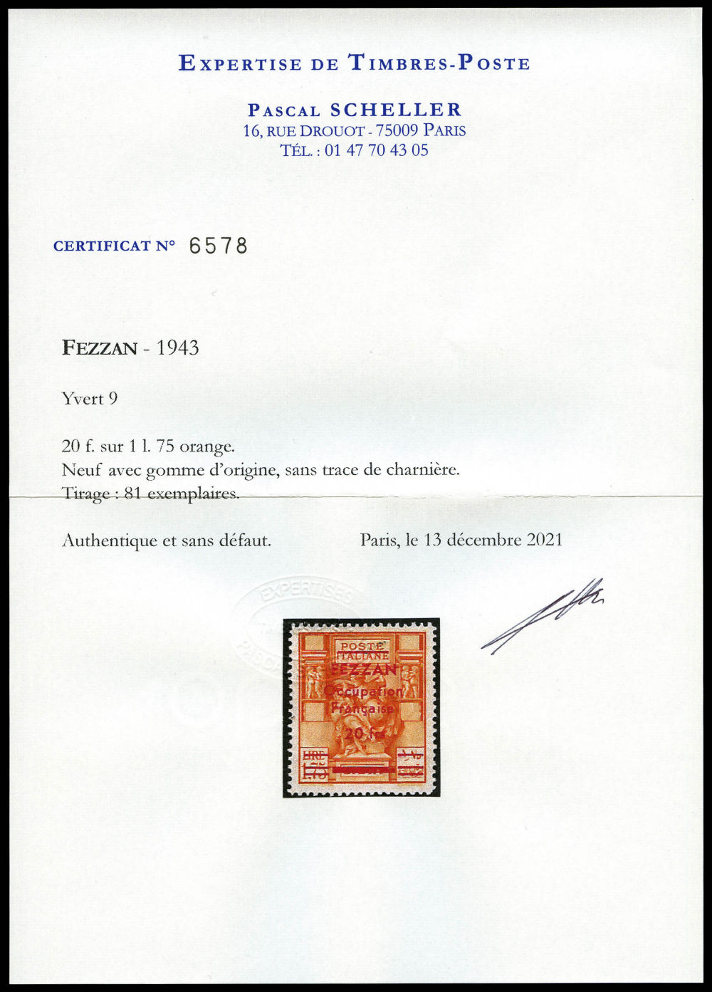 3144 nh imageN°9, 20f sur 1 l.75 orange, très bon centrage. SUPERBE. R.R. (signé/certificats) Qualité: ** Cote: 10000 euros (Image) (imagea) (imageb) (All Images)