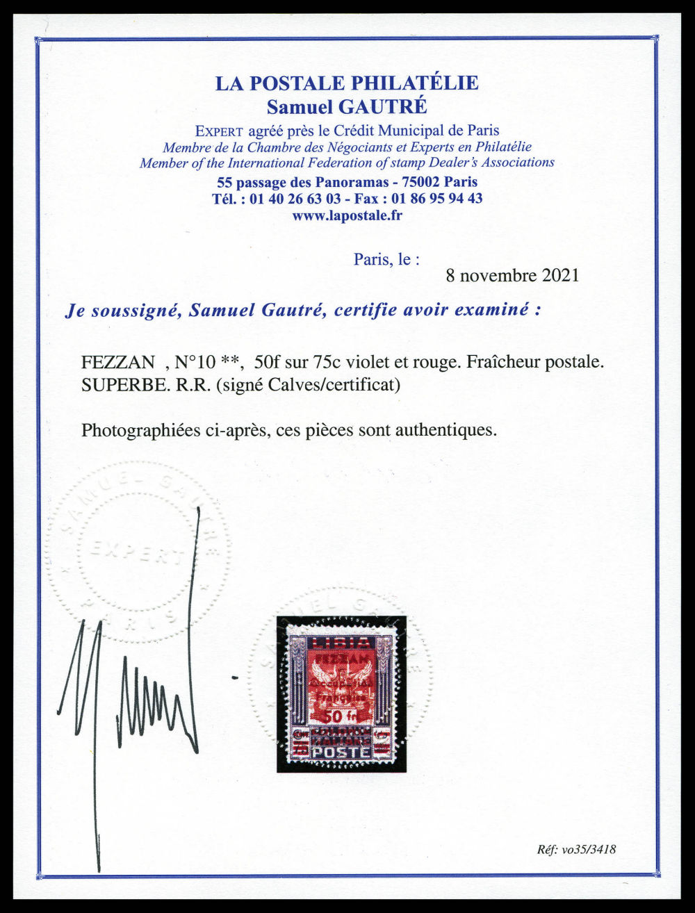 3146 nh imageN°10, 50f sur 75c violet et rouge, tirage 79 exemplaires. Fraîcheur postale. SUPERBE. R.R. (signé Calves/certificat) Qualité: ** Cote: 12000 euros (Image) (imagea) (All Images)