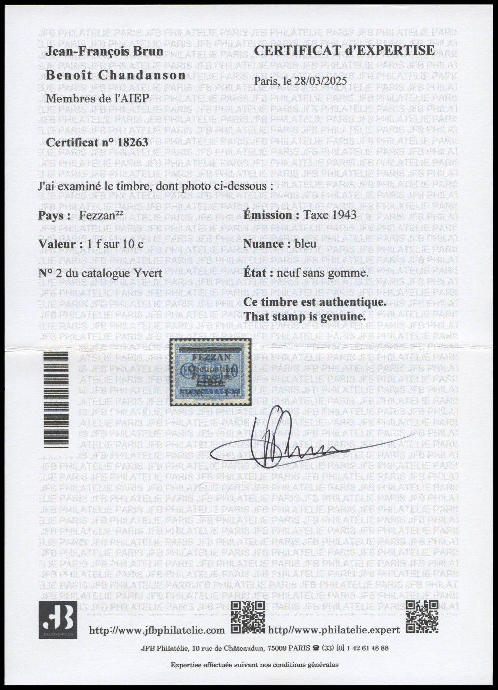 3152 og imageN°2, 1f sur 10c bleu, frais. SUP. R. (signé Brun/Bollafi/Diena/certificat) Qualité: * Cote: 2625 euros (Image) (imagea) (All Images)