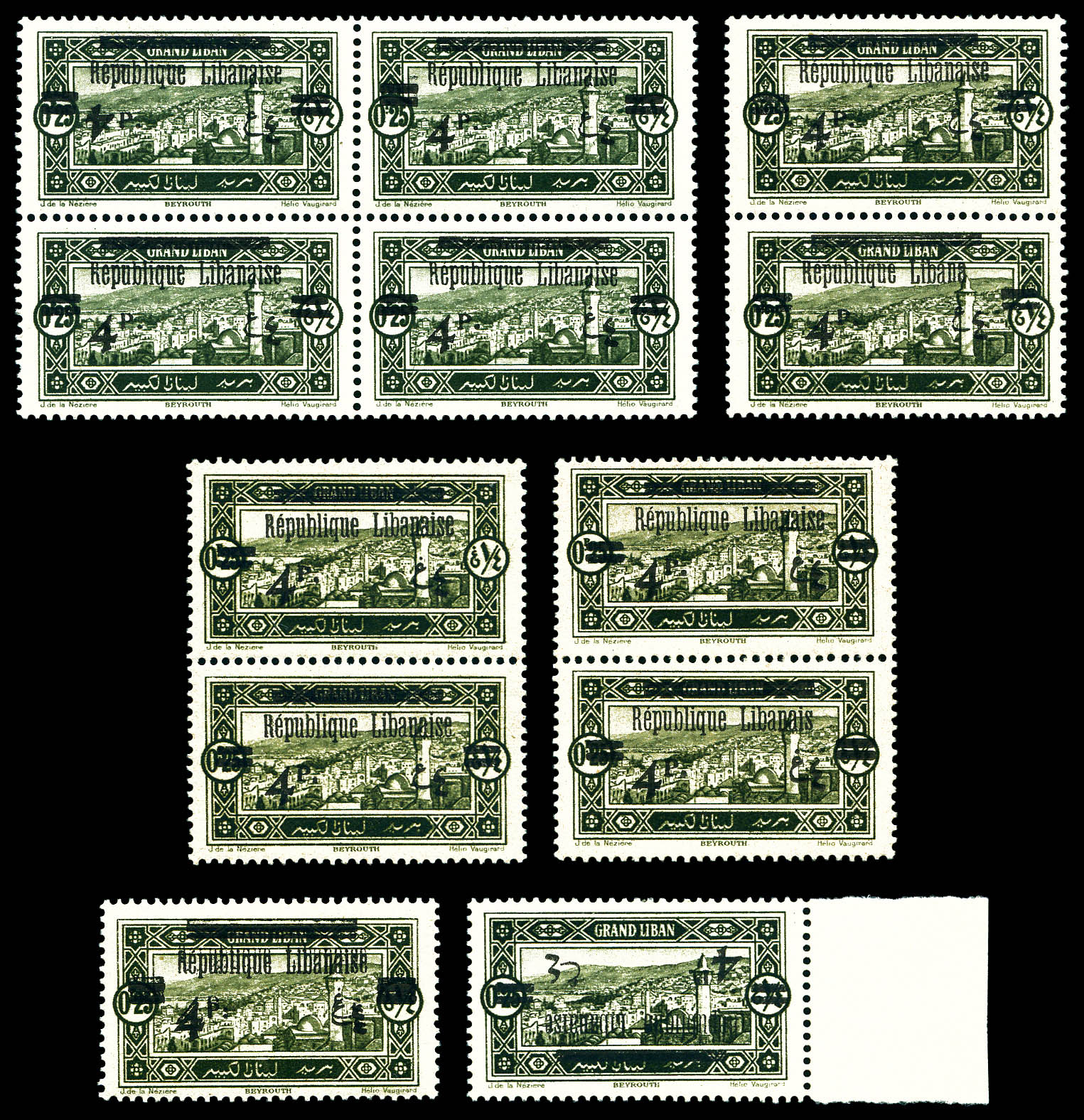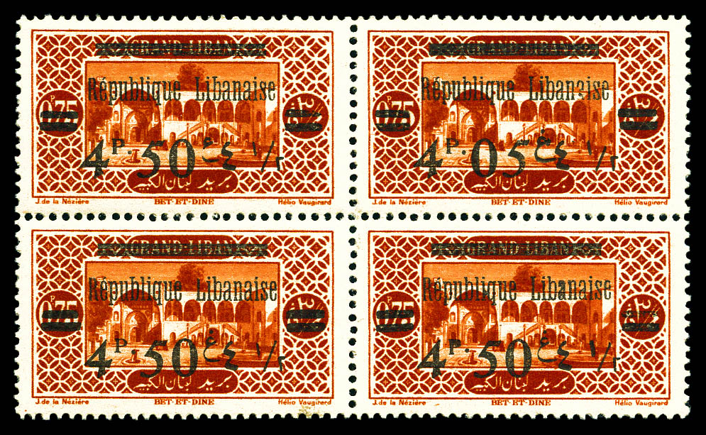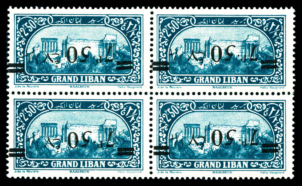 N°78a, 7 pi 50 sur 2pi 50: surcharge renversée en bloc de 4. TTB (certificat) Qualité: ** Cote: 520 euros (Image)