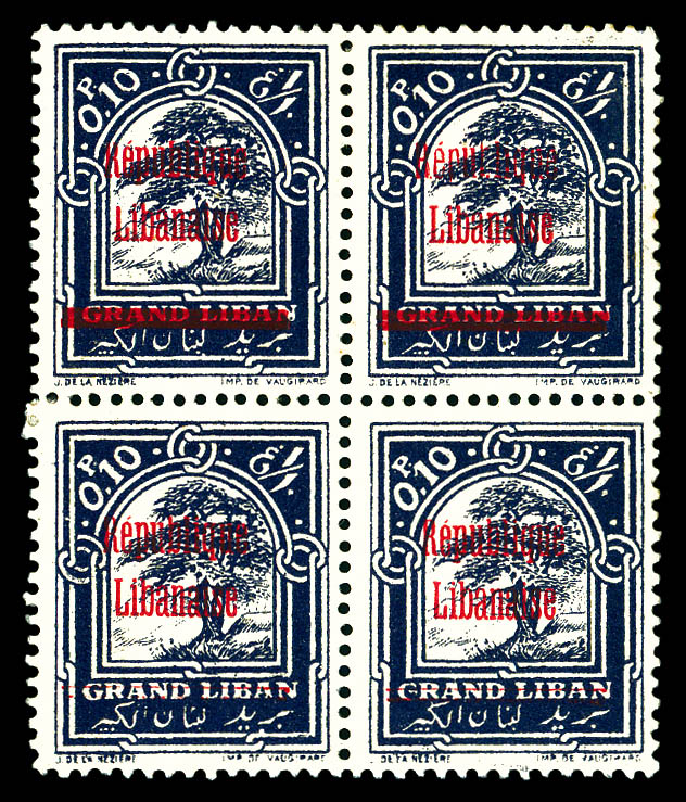N°84, 0.10 pi violet: surcharge sans les barres tenant à 2 ex normaux* en bloc de 4. TTB Qualité: ** (Image)