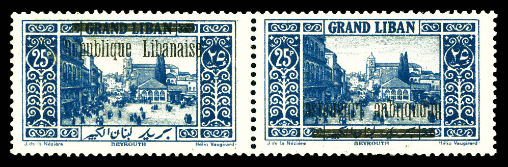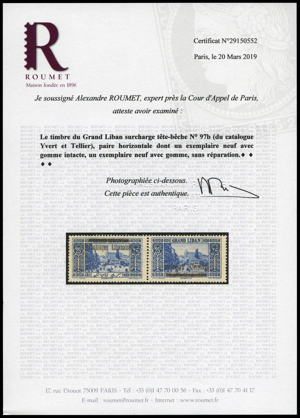 N°97b, 25 pi bleu: paire avec surcharge tête-bêche, 1 ex*. TTB (certificat) Qualité: ** Cote: 250 euros (Image) (imagea)
