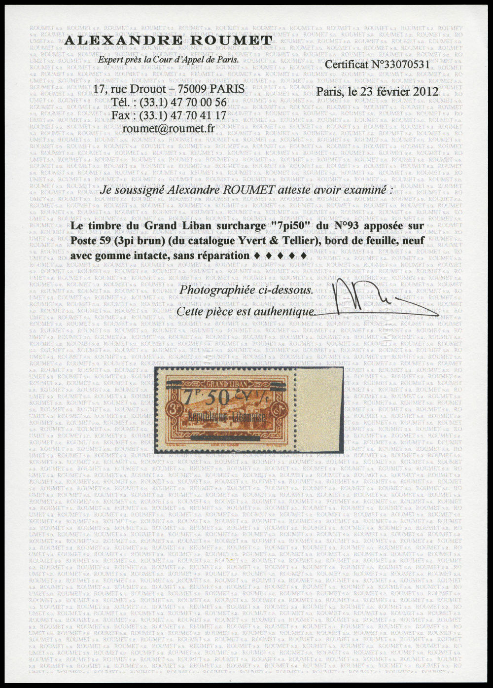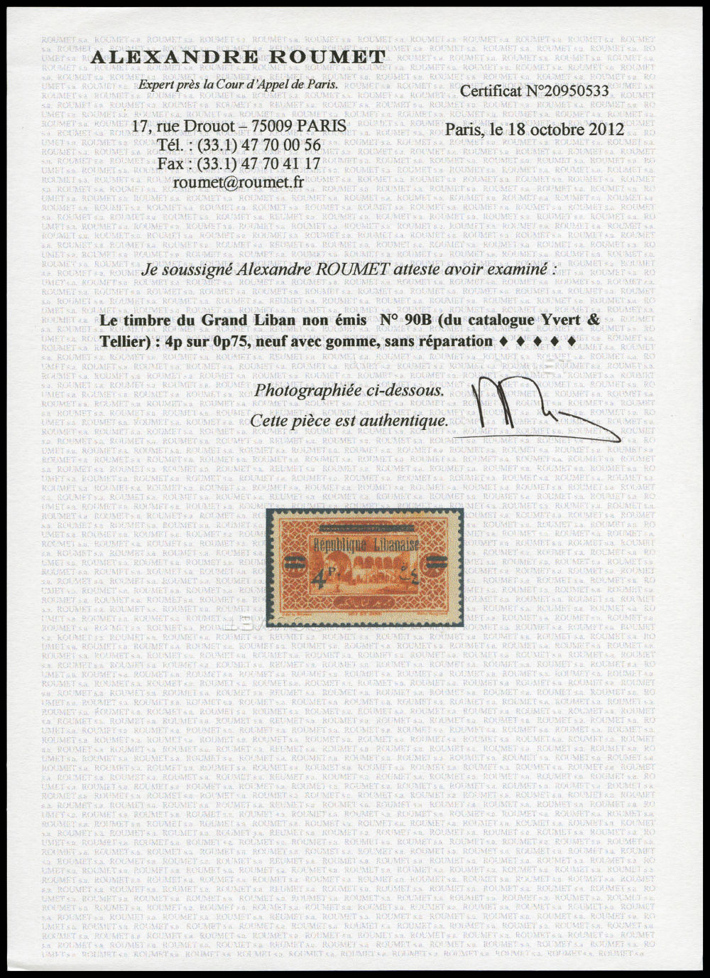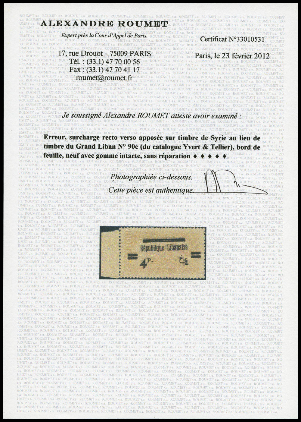 N°90c, Surcharge sur le n°155 de Syrie dont variété recto et verso, bdf. TTB (certificats) Qualité: ** (Image) (imagea)