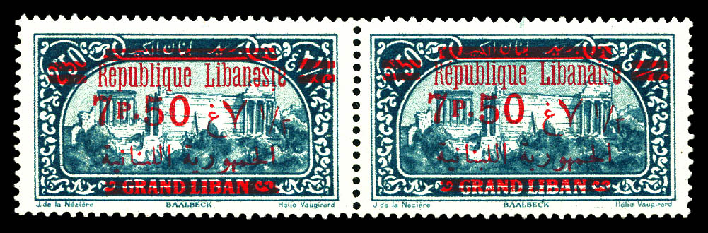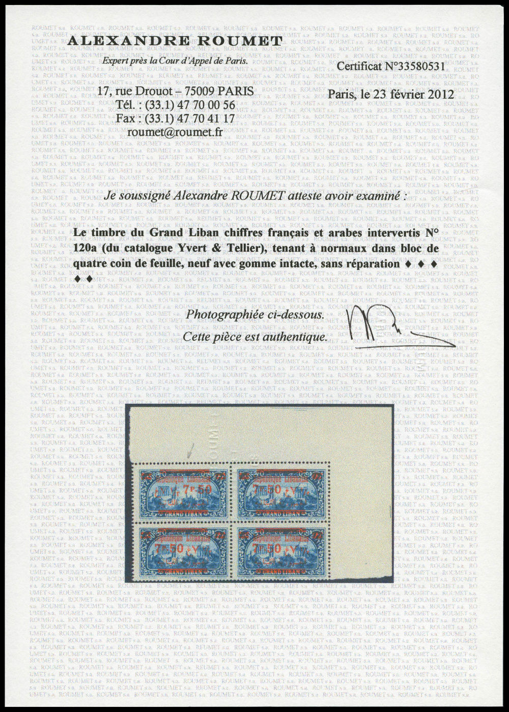 N°120, variété 'aise' renversé dans 'Libanaise' tenant à normal. SUP (signé Calves/certificats) Qualité: ** (Image) (imagea)