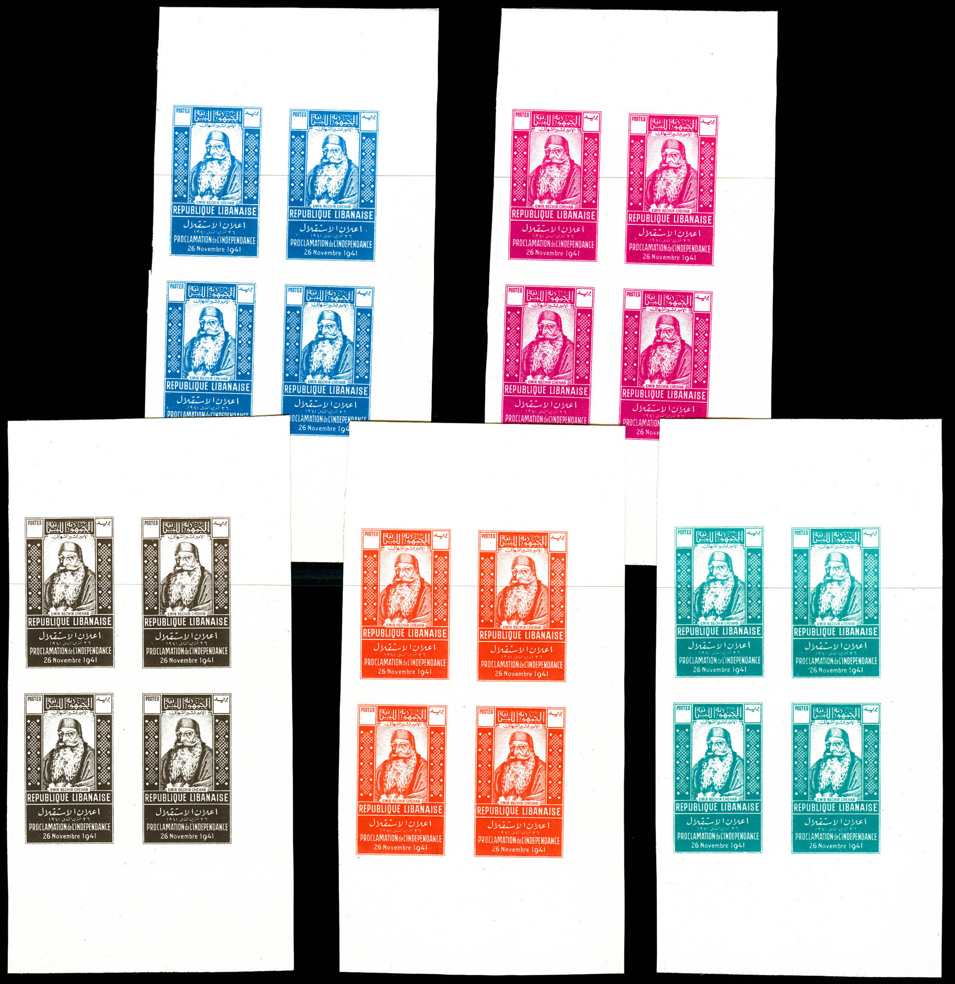 Anniversaire de l'Indépendance: 5 Epreuves de couleurs différentes en blocs de 4. SUP. R. (certificat) Qualité: (*) (Image)