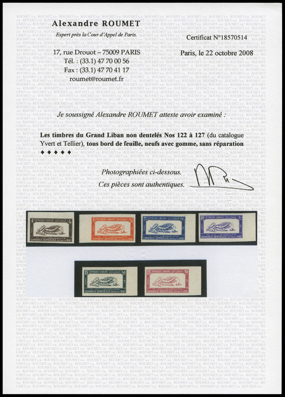 N°122/127, Série Congrès de 1930 non dentelée. TB (certificat) Qualité: * Cote: 650 euros (Image) (imagea)
