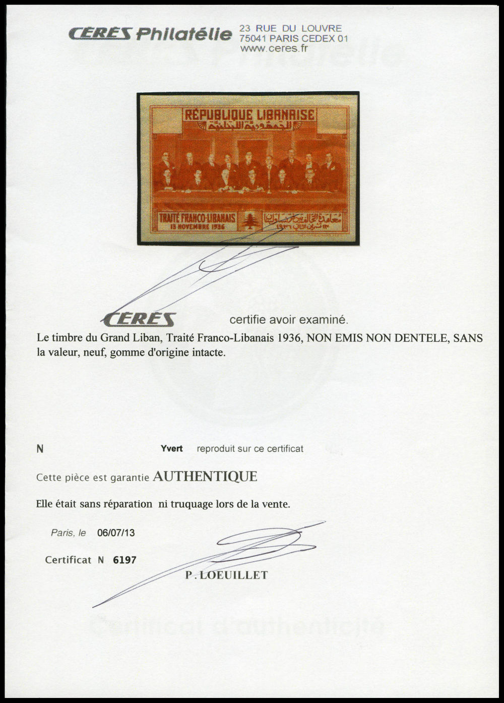 N°149Ca, Traité Franco-Libanais: Non émis, non dentelé sans la valeur.SUP (certificats) Qualité: ** (Image) (imagea)