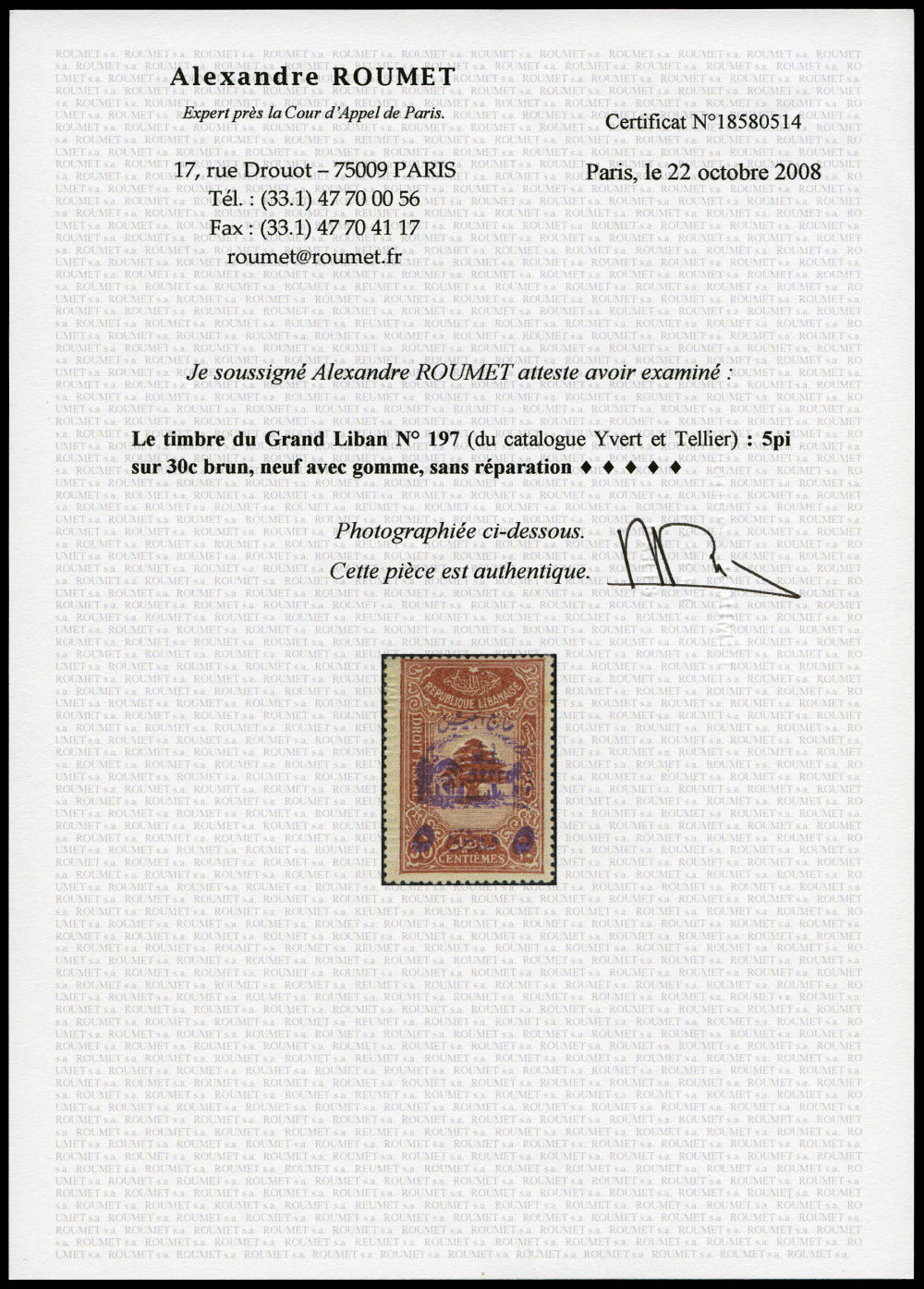 N°197, 5 pi sur 30c brun. SUP (certificat) Qualité: ** Cote: 820 euros (Image)