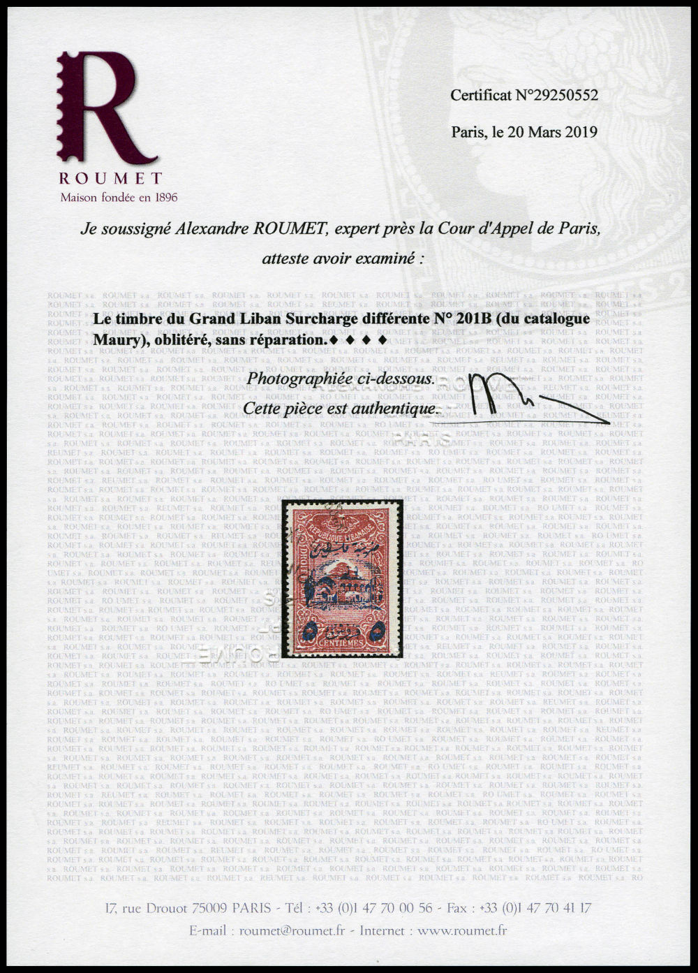 N°201B, (Catalogue Maury): Surcharge différente. TTB. R. (signé/certificats) Qualité: Oblitéré Cote: 500 euros (Image) (imagea)