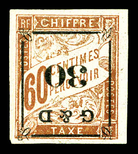 3344 og imageN°13k, 30 sur 60c brun et chamois, surcharge renversée. SUP (signé Brun/certificat) Qualité: * Cote: 1250 euros (Image)
