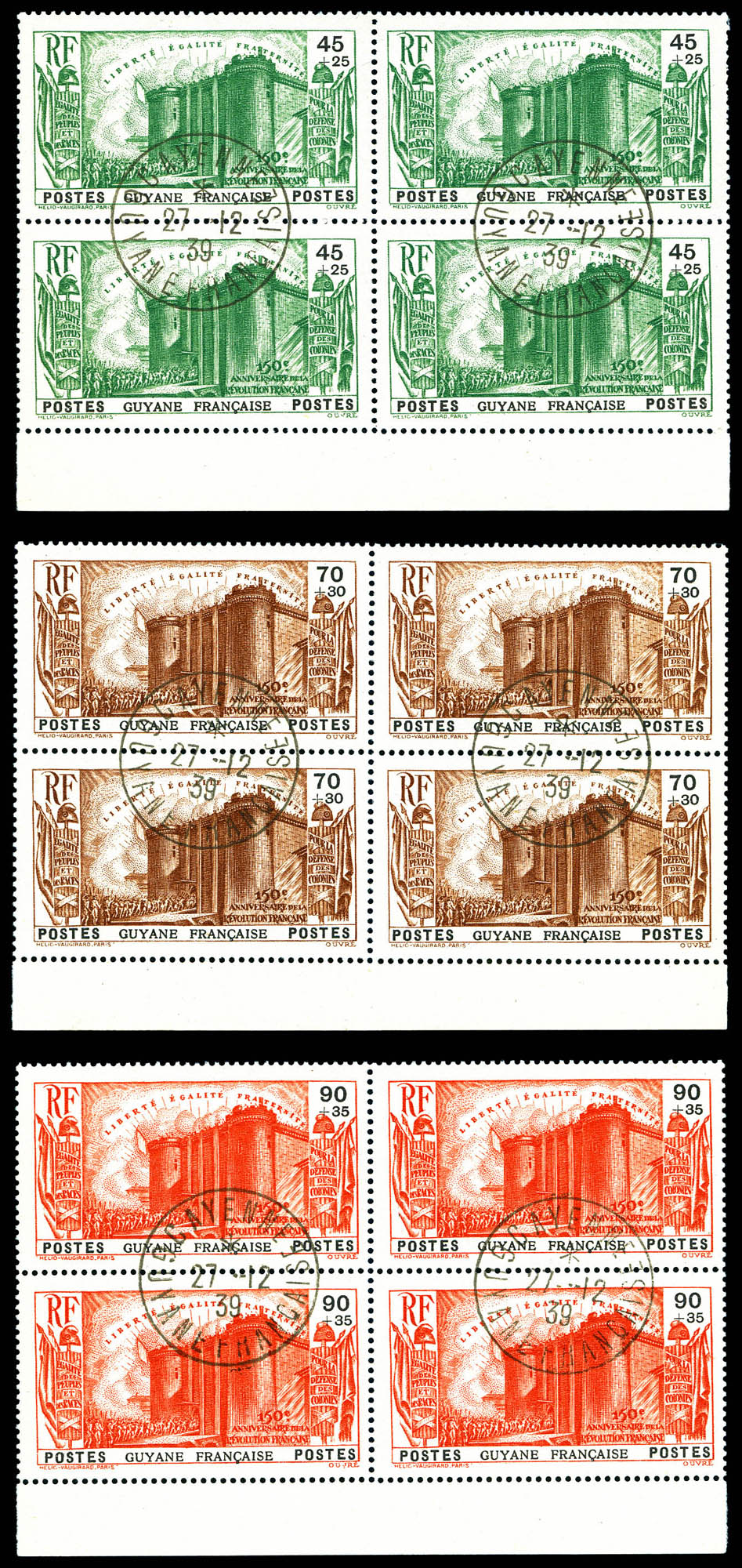 3381 imageN°152/156, Série révolution en bloc de quatre obl càd du 27.12.39. TB Qualité: Oblitéré Cote: 440 euros (Image) (imagea) (All Images)
