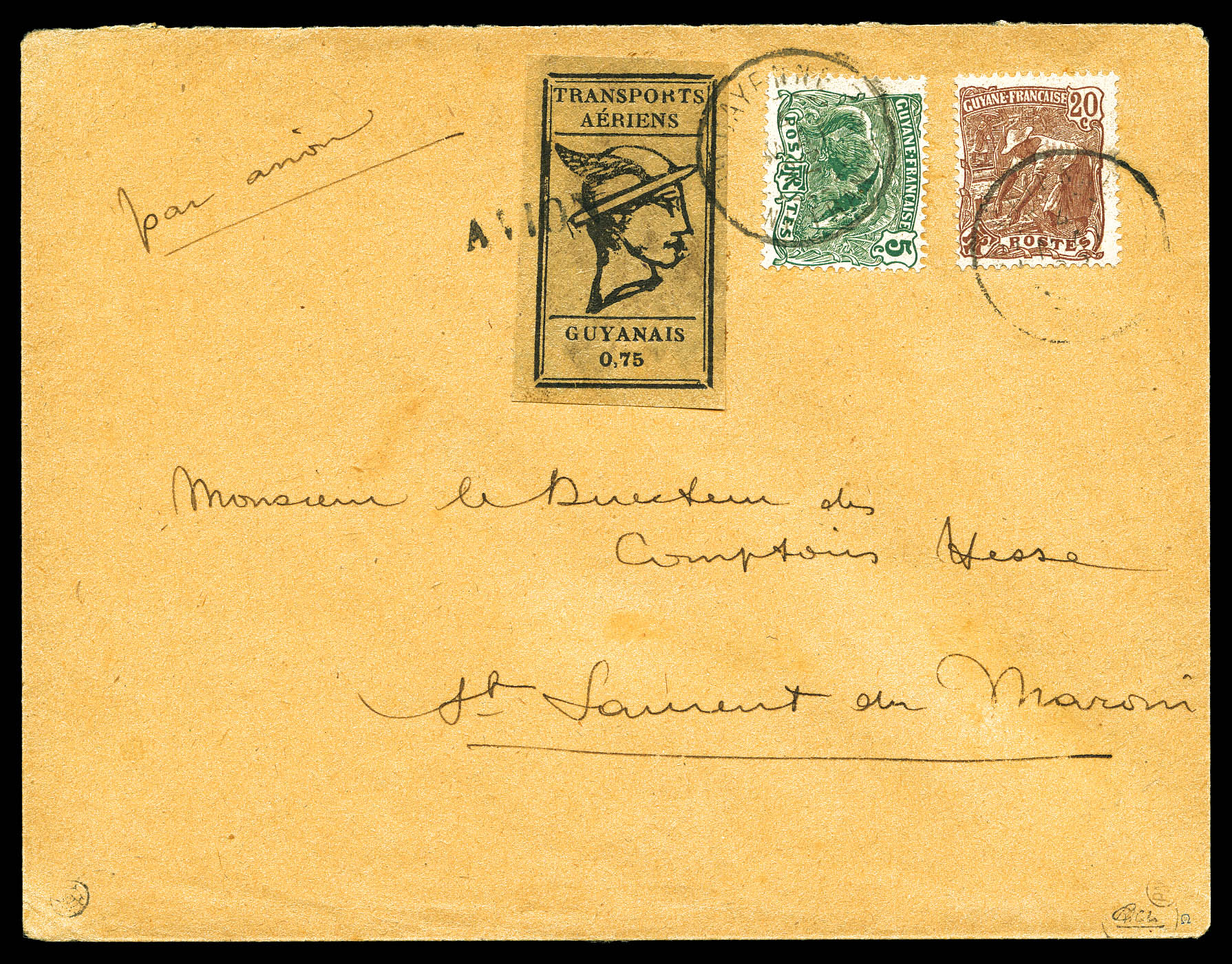 3383 imageN°6A, T.A.G, 75c noir sur gris (grandes marges) sur lettre de Cayenne pour St Laurent du Maroni. R.R. SUPERBE (signé Calves/certificat) Qualité: Oblitéré (Image)