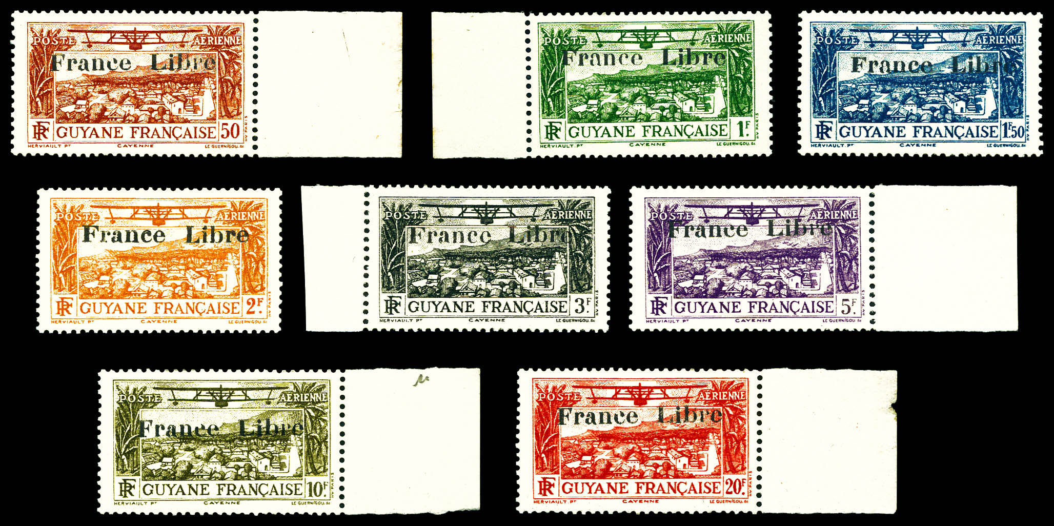 3385 nh imageN°11/18, Série de 8 valeurs surchargée 'FRANCE LIBRE', tirage 290 séries. SUP. R. (certificat) Qualité: ** Cote: 1280 euros (Image)