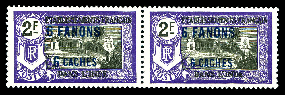 N°153aa, 16 ca rose: surcharge renversée à cheval en paire coin de feuille. SUP. R.R. (signé Calves/certificat) Qualité: ** Cote: