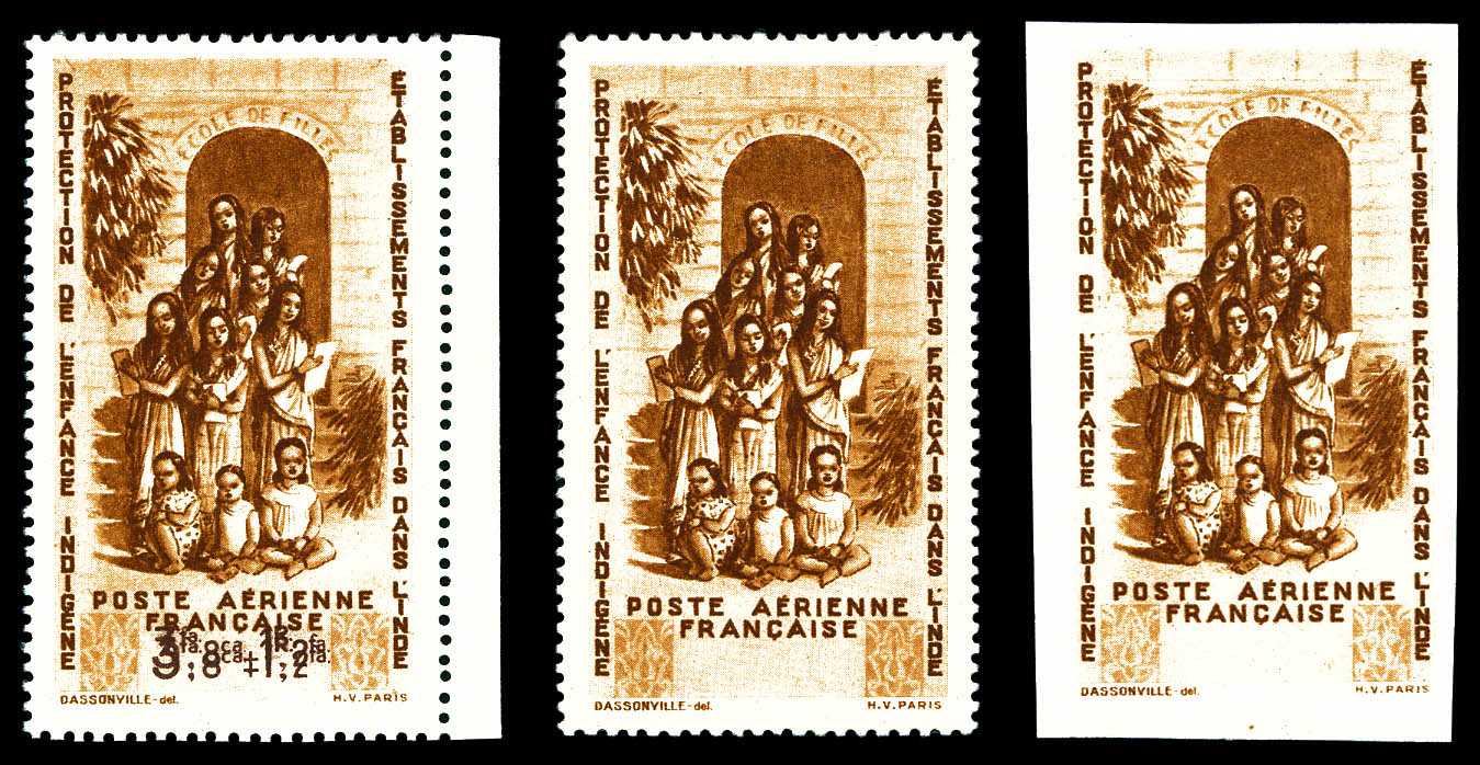 N°8a/8b/8c, Variétés: double impression de la valeur, sans indication de la valeur et sans indication de la valeur non dentelé, les 3