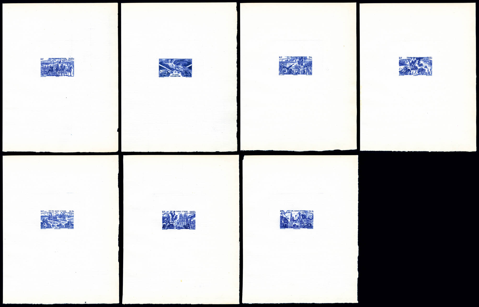 N°10/16, Série Tchad au Rhin: ensemble de 7 épreuves d'Artiste en bleu outremer sur papier filigrané (17x 21,5 cm), R.R.R