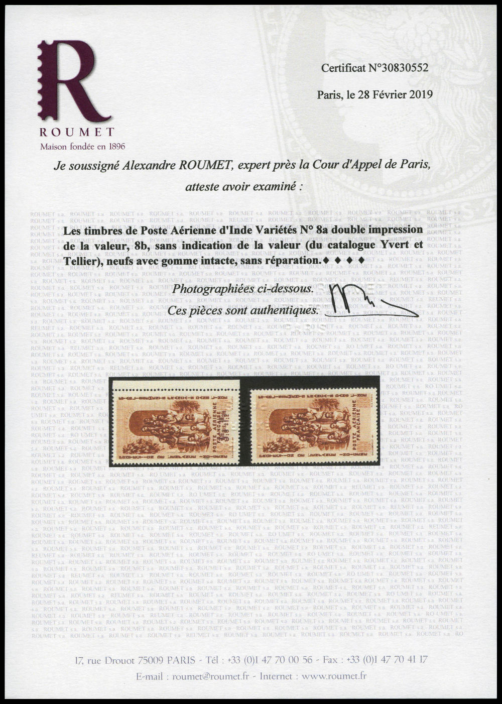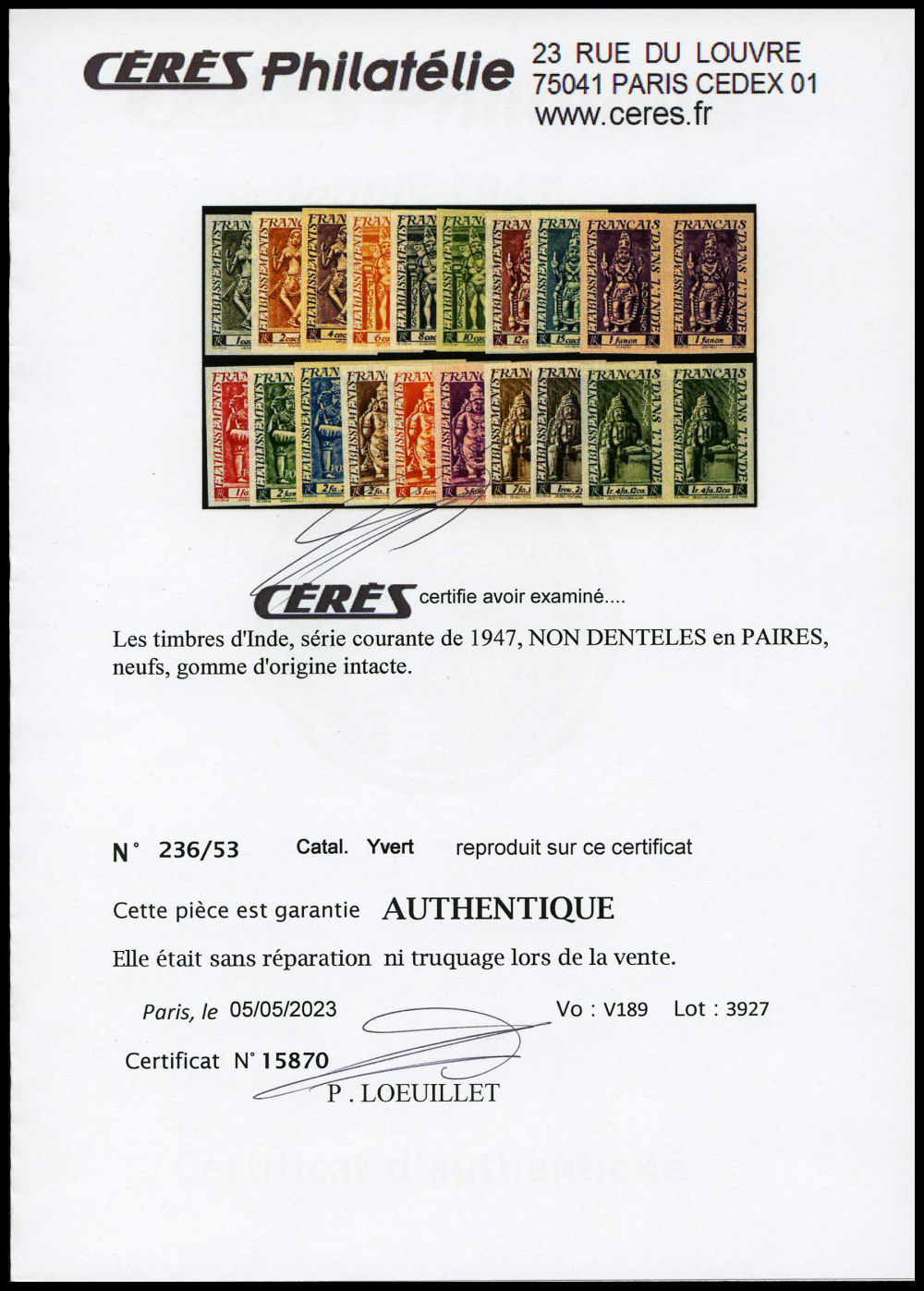 exemplaires TTB (certificats) Qualité: ** Cote: 1130 euros (Image) (imagea)