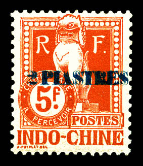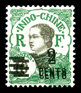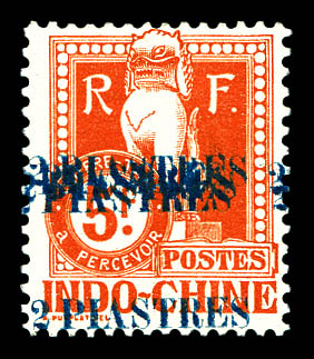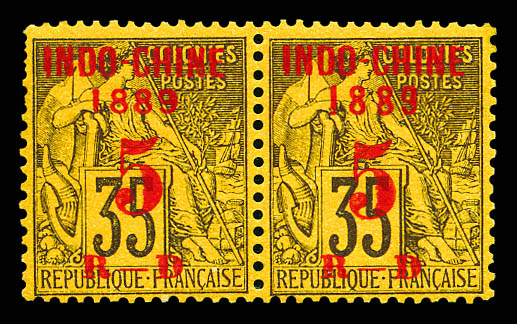 N°30a, 2 pi sur 5f rouge: double surcharge. SUP (certificat) Qualité: ** Cote: 730 euros (Image)