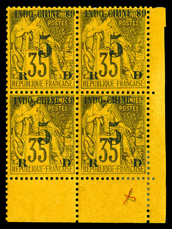 N°2aa, 5c sur 35c violet-noir: Sans chiffre 89 tenant à normaux en bloc de quatre cdf. SUP. R. (signé Brun/certificat) Qualité: *