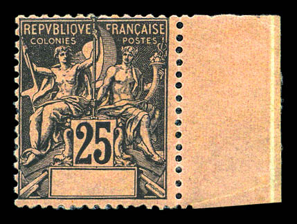N°10a, 25c noir sur rose, SANS LEGENDE 'INDO-CHINE', bord de feuille latéral. SUPERBE. R.R.R. (signé Brun/certificats) Qualité: *