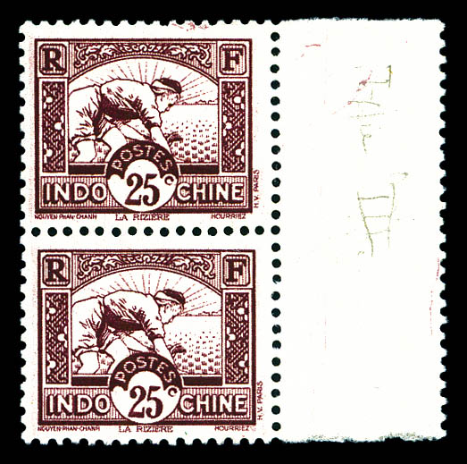 N°165b, Rizière: 25c lilas Type III en paire bdf, FRAICHEUR POSTALE, SUP (certificat) Qualité: ** Cote: 360 euros (Image)