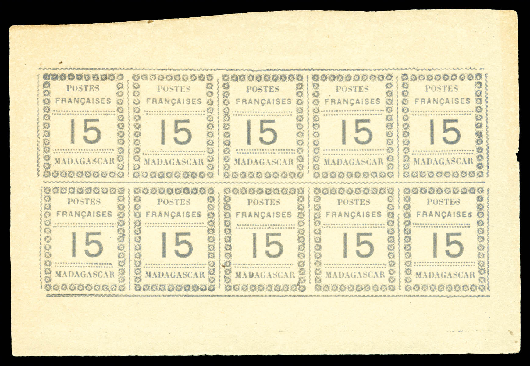 3532 ng imageN°10a, 15c bleu sur gris en feuillet de 10 timbres, très jolie pièce, rare et SUP (signé Calves/certificat) Qualité: (*) Cote: 2100 euros (Image)