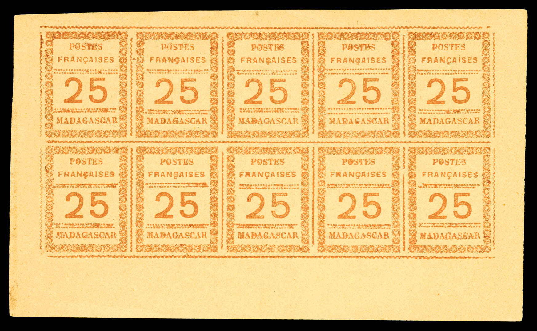 3533 ng imageN°11a, 25c brun sur chamois en feuillet de 10 timbres, jolie pièce. TB (signé Calves/certificat) Qualité: (*) Cote: 600 euros (Image)